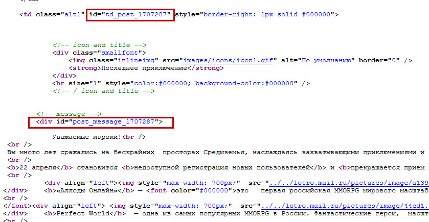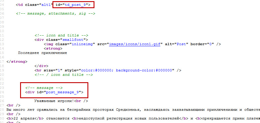 Возьмем, к примеру, тему "Последнее приключение". В старом коде форума: