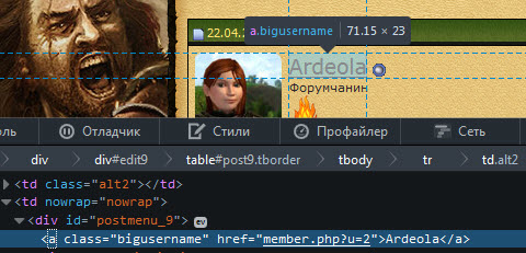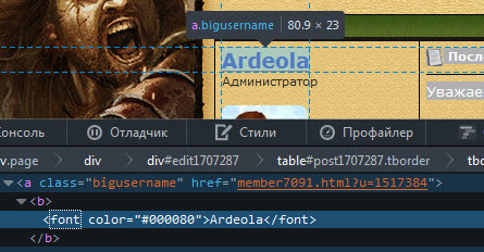 Теперь о некоторых фактах. У меня на компе лежит оффлайновая версия форума. Спарсенная, кстати, просто не перенесенная на какой-то движок. В ней можно увидеть старые примеры страниц и их кода. Я могу это оффлайновую версию куда-нибудь залить даже, хотя где-то, вроде, уже кто-то подобную же версию заливал. Давайте посмотрим внимательнее на код.